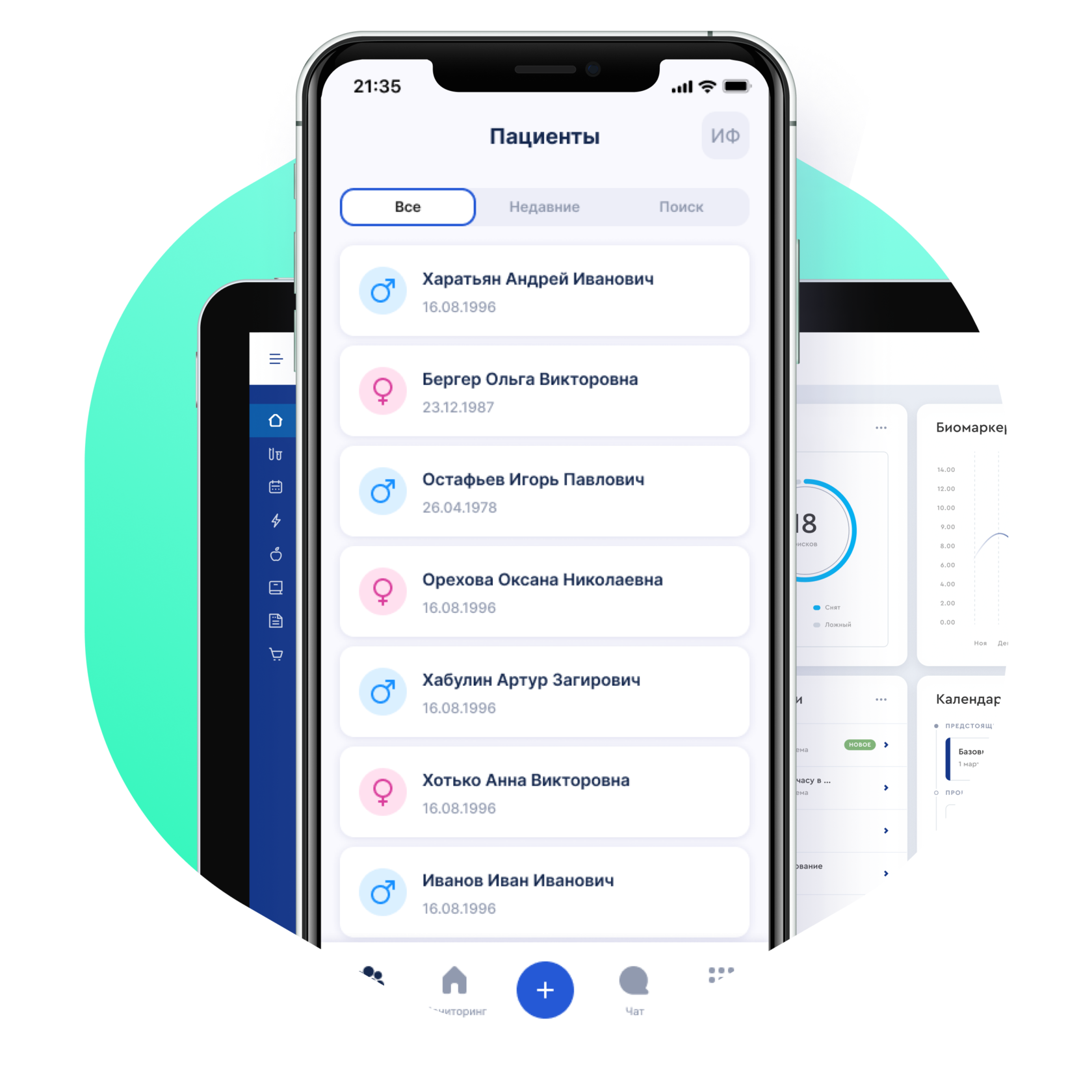 Кроссплатформенное приложение для хранения и анализа данных о здоровье и активности ваших клиентов (пациентов). Единое информационное пространство для работы с медицинскими данными совместно с коллегами. Доступно для iOs, Android и в браузерах. Не является медицинским изделием.